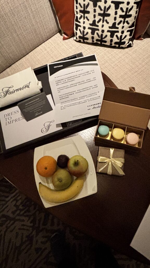 - 歡迎禮物是水果及馬卡龍,感受到被尊榮對待。