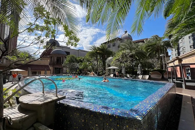 館內設有恆溫泳池、健身房及蒸氣室,環境潔淨典雅。尤其是泳池,以馬賽克磁磚鋪成,像童話般浪漫,很容易拍出雜誌感畫面。晚上燈光灑落水面時格外浪漫,堪稱台北市中心最放鬆的世外桃源。