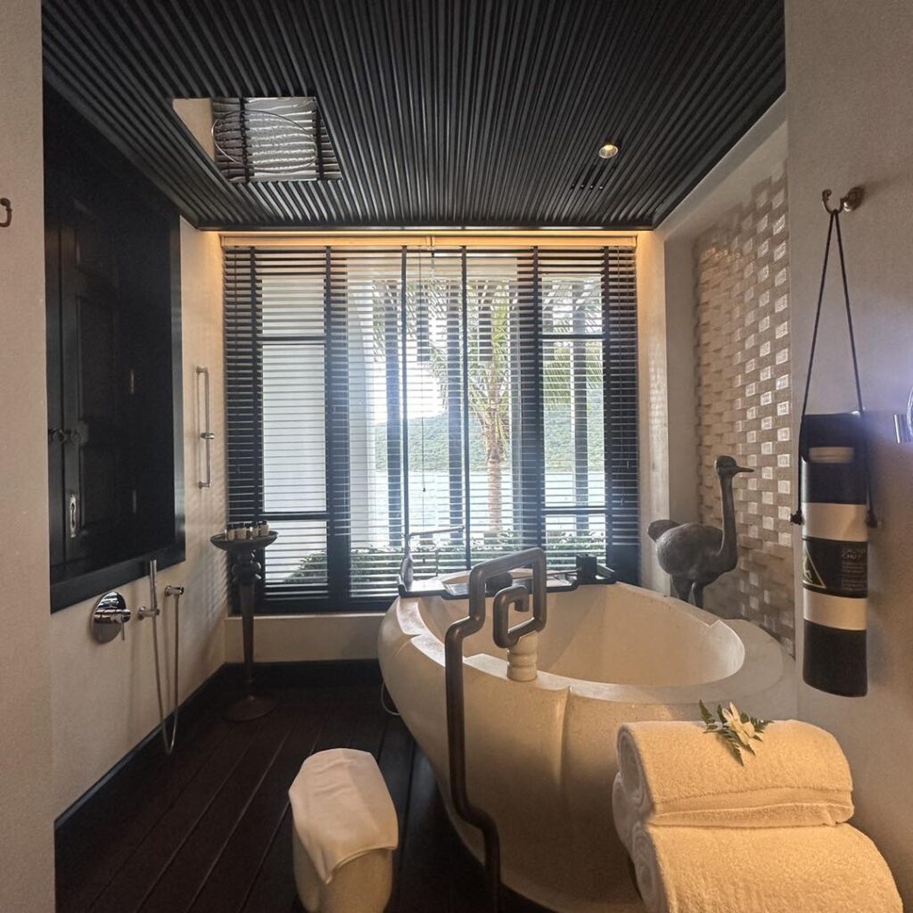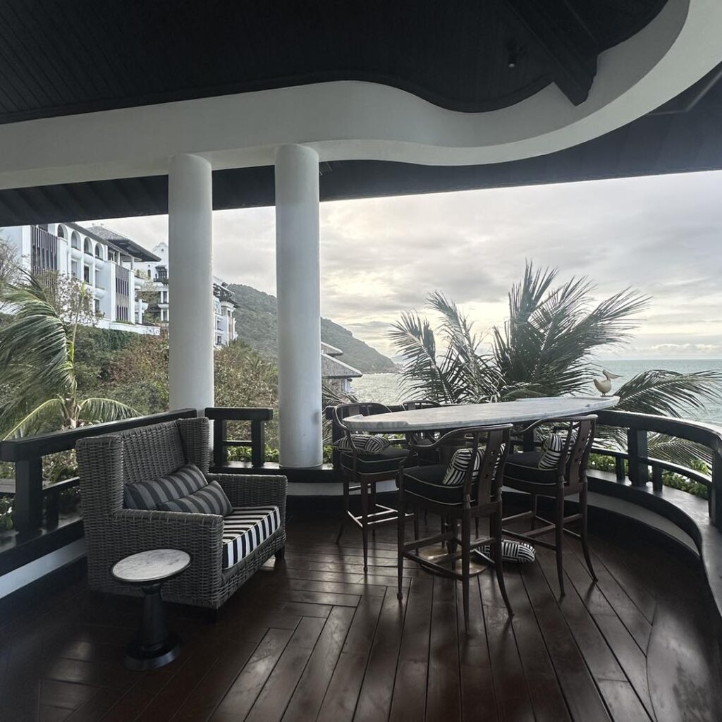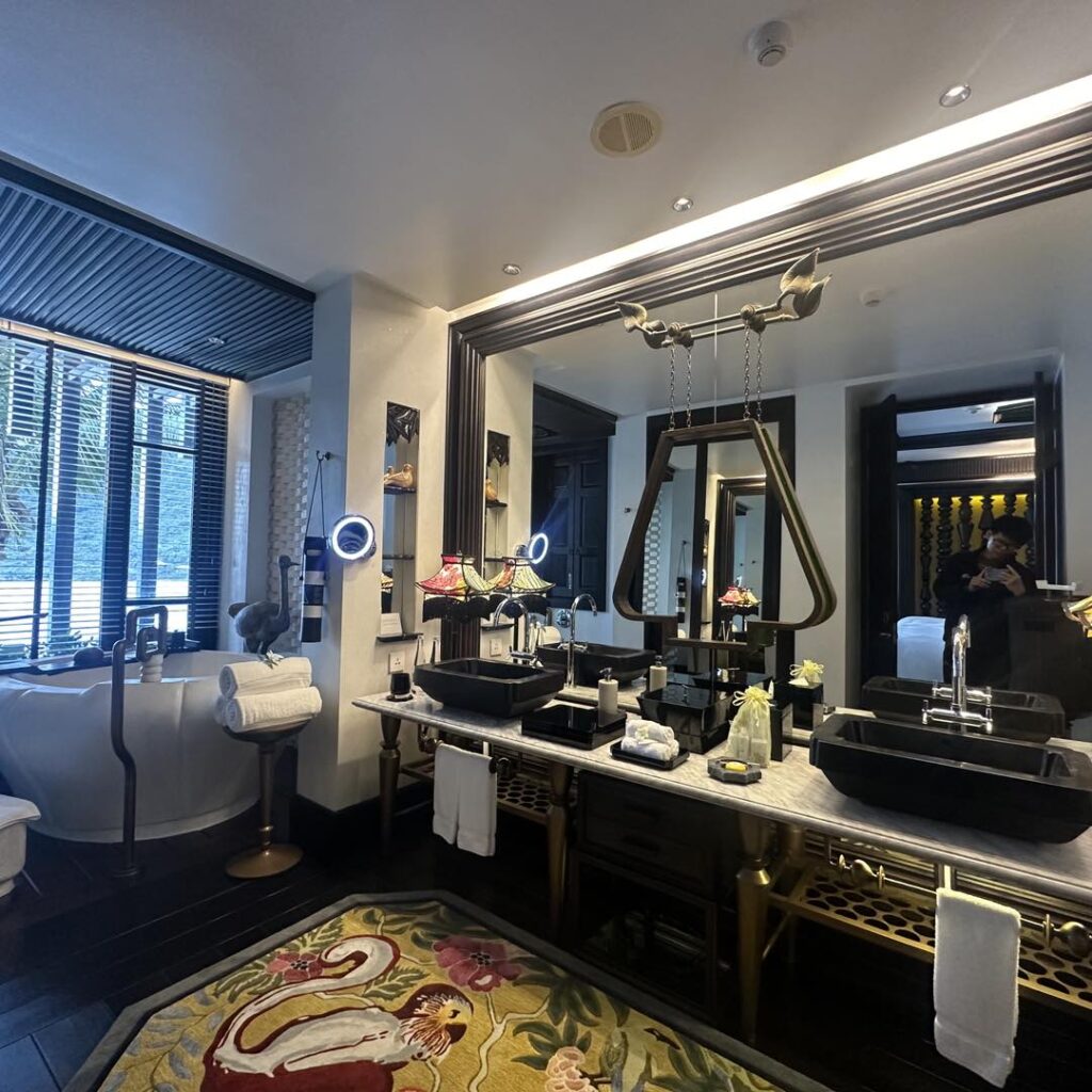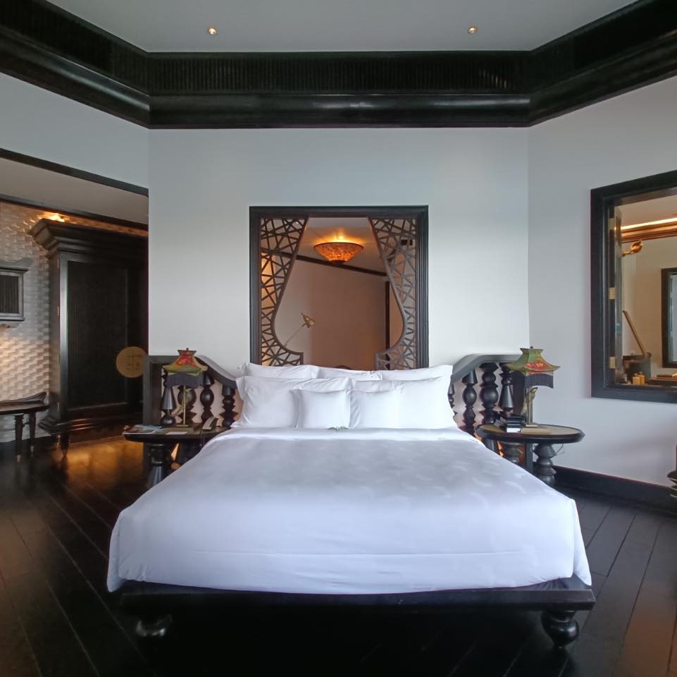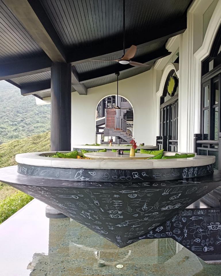 由設計鬼才 Bill Bensley 親手操刀。黑白色調搭配摩登元素,點綴來自世界各地的工藝品與傢俱,每一處角落都帶有故事感。200個房間、16間頂層公寓和套房,花了7年時間建造而成,他將環遊世界搜集而來的工藝品、書籍和家具融入設計。自2012年開業起就成為許多旅人的夢幻必住酒店,位於峴港山茶半島自然保護區中,擁有700米的私人海灘,度假村中還需靠纜車上下移動,以及斗笠懸空景觀餐廳,集眾多賣點於一身。