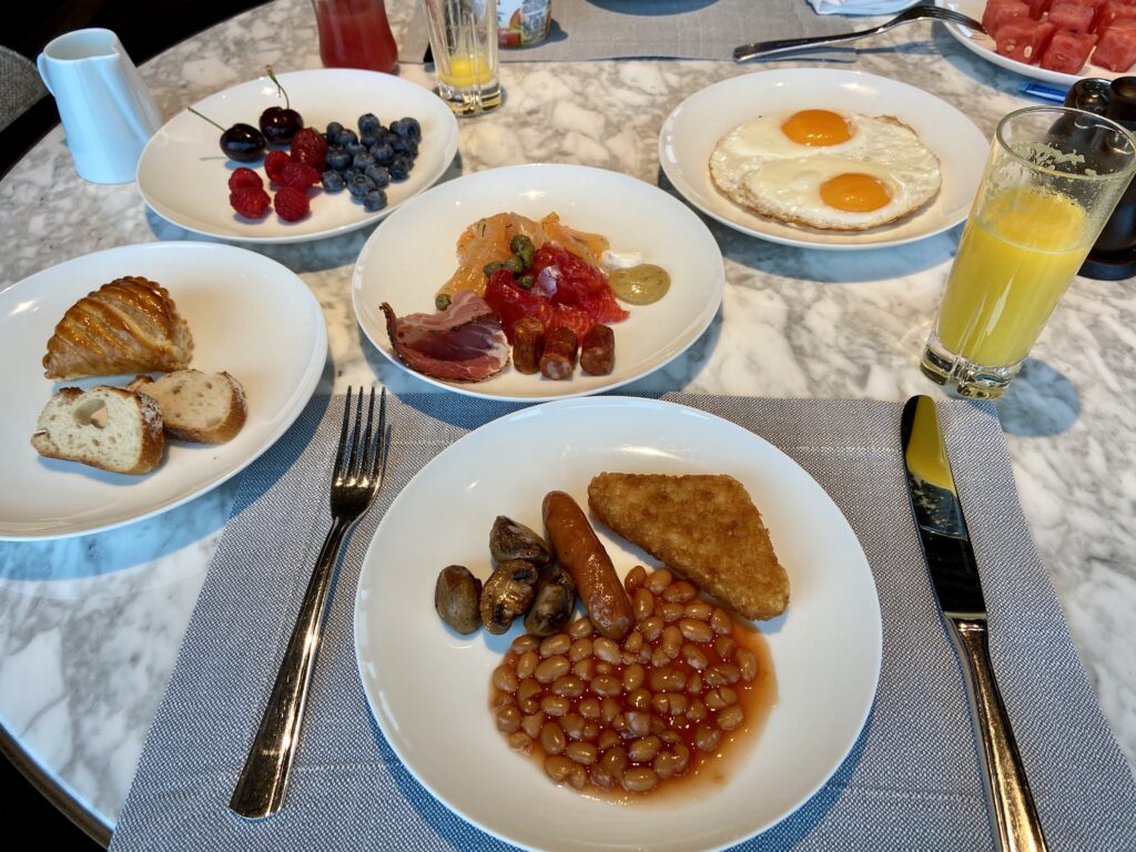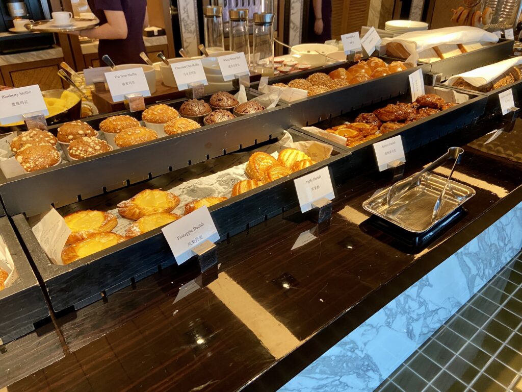 提供在全日餐廳中西式自助早餐,現烤麵包、現煮蛋品、鮮榨果汁每日供應,還有本地南京特色小吃佐以英國進口果醬,滿足挑剔味蕾。