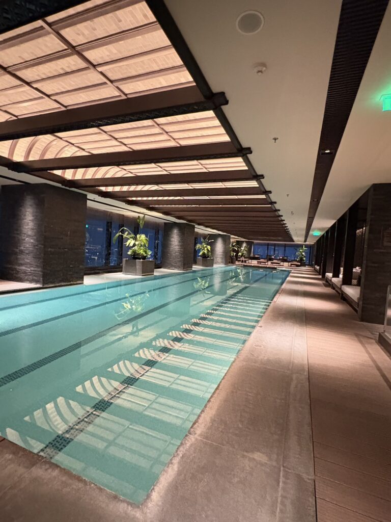 40 樓設有景觀室內泳池,如空中無邊際一般遼闊;全天候健身中心,SPA 療癒空間極具東方雅韻,公共區藝術與書畫濃厚文化氛圍。